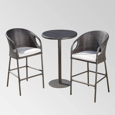 Create an intimate corner in your patio, backyard or garden with this attractive and functional Christopher Knight Home Dominica 3 pc Wicker Round Bar Set. Made from the highest quality all weather wicker over an iron frame, it is designed to endure the elements so that you can enjoy them. Design a spot in your backyard to dine with a friend or enjoy a morning cup of coffee with this Christopher Knight Home Dominica 3 pc Wicker Round Bar Set.