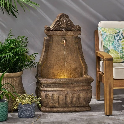 Create a charming look in your outdoor space with an accessory that brings a soothing cascade of water to your home. Our garden fountain features a calm waterfall flow that continuously circulates using an included pump, bringing a classic look to any backyard or patio. Crafted with an incredibly durable polyresin material, this decorative accessory offers a weather-resistant structure that allows outstanding attention to detail. Finished with a classic single spout design and enchanting underwater lights, our water fountain is sure to add a touch of whimsy to your home.
