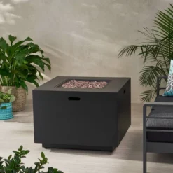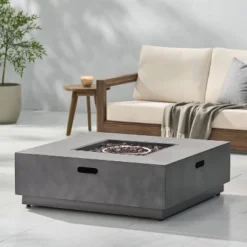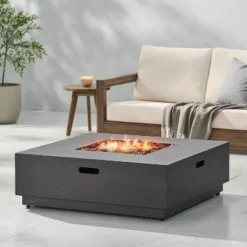Wellington Outdoor 50000 BTU Square Fire Pit With Concrete Finish – Christopher Knight Home