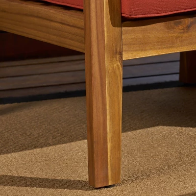 Allow your outdoor living area to grow as you add new loved ones to your roster of regular guests – this all-inclusive 3-seater sectional sofa set is both substantial enough to stand on its own and adaptable enough to be configured around your existing outdoor furniture collection. This assemblage includes a left-side armrest, a right-side armrest, an armless segment a matching ottoman, and a broad, low-profile coffee table, all items featuring stylishly slatted acacia wood frames bearing water-resistant outdoor cushions; available in a number of attractive hues, allowing you to customize your purchase to suit your own individual taste.