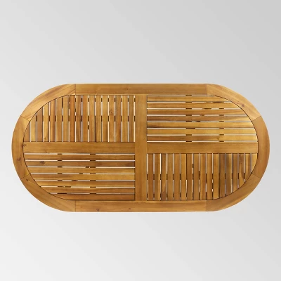 Take in a breath of fresh air in the great outdoors with a dazzling focal point for your backyard. Seating up to six, this Christopher Knight Home Hermosa 7pc Acacia Wood Oval Dining Set is perfect for the warm summer nights, an excellent escape from stuffy indoor dining. Made with acacia wood and water-resistant cushions, this dining set offers incredible durability that provides generous comfort, allowing you to freely spend the time with your family and friends. So go ahead and throw some steaks on the barbeque and eat with stars.