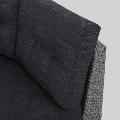 There is nothing quite like enjoying the warm outdoors in the comfort of this Christopher Knight Home Navagio 5 Pc Wicker Sofa Set. Constructed from durable top quality wicker, this set includes four curved two-seater sectionals that fit together to create a moon shaped lounge. This also has a matching table that can be nestled within or in front the sofa set. Whether arranged together or spaced apart, this Christopher Knight Home Navagio 5 Pc Wicker Sofa Set includes matching plush cushions that provide a comfortable experience for your guests.