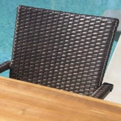 Baldwin 5pc Acacia Wood & Wicker Dining Set – Teak/Brown/Cream – Christopher Knight Home