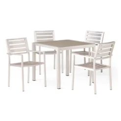 Cape Coral 5pc Aluminum & Tempered Glass Dining Set – Silver – Christopher Knight Home