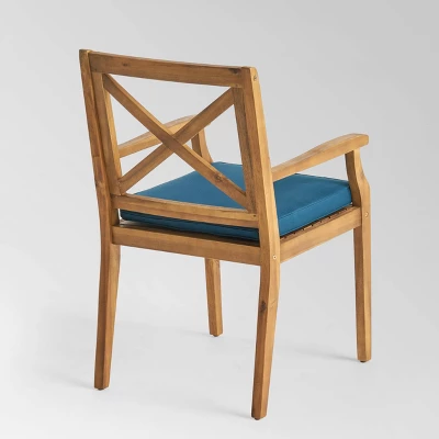 Perla 7pc Acacia Wood Seating Set – Teak/Blue – Christopher Knight Home