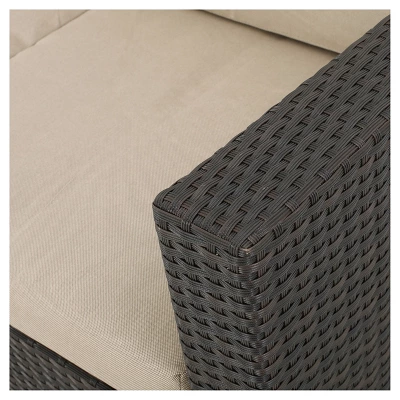 This V shaped sectional sofa set is the answer to all of your outdoor hosting needs. Create any flow you want with the versatility of this sectional sofa. Complete with a coffee table for all of your drink needs, this set seats five comfortably! Enjoy your patio and dare to dream bigger with this sectional sofa set.