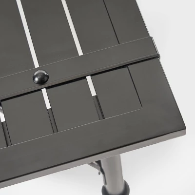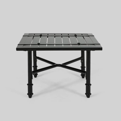 Give your outdoor space a classic touch with our end table that is also an ideal place to set your morning coffee. With straight black bars and gorgeously turned legs, this end table is an excellent sidekick to your outdoor furniture, perfect for holding a tray of snacks or a pitcher of lemonade. Featuring a traditionally inspired look and an aluminum frame that provides incredible stability, our end table will have no problem keeping your patio in style all summer long.