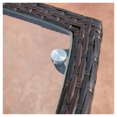 The Christopher Knight Home Weston Wicker with Glass Top Patio Side Table is stylish and convenient for your outdoor needs. You can place this table near your seating area to serve snacks and beverages on top of the glass table top. The bottom compartment can be used to hold your plants or other items. Made of environment friendly synthetic wicker, you will find many uses for this Christopher Knight Home Weston Wicker with Glass Top Patio Side Table.